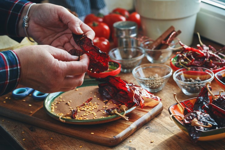 Preheat an oven to its maximum temperature. OR, heat a heavy-bottomed skillet over medium heat. The pan should be heated up to the point just before it starts smoking.